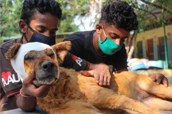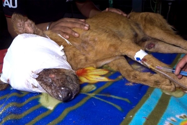 Deze wanhopige jongen leek onmogelijk te redden. Maden hadden zich ingegraven in de bovenkant van zijn hoofd: wanneer maden zich zo voortplanten, kunnen ze binnen enkele uren enorme schade aanrichten. We waren bang dat hij het niet zou overleven, want hij leek al zijn energie nodig t hebben om alleen maar te kunnen staan.